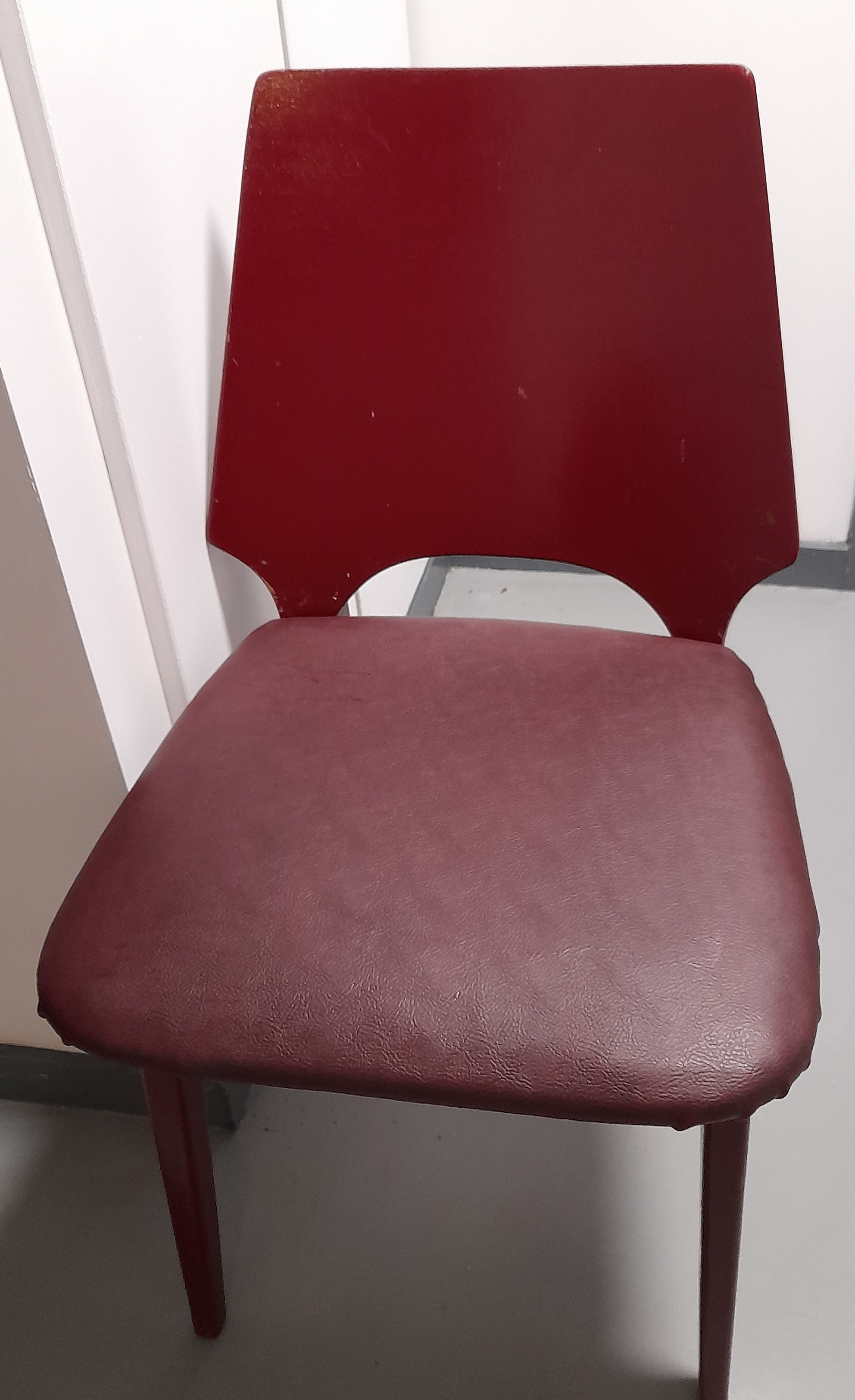 These two chairs, made in 1960, were in a rare state when I acquired them. They had several coats of maroon thick gloss paint on them and 4 different sets of upholstery, each one on top of the next. I liked the look of them, the shape, the legs and thought that they were worth a punt. What was interesting was the different upholstery on the chairs down the decades, all of them revoltingly dirty, the original upholstery in some sort of blue-black-grey tweed type fabric followed by brown Draylon, yellow vinyl and finally maroon vinyl.