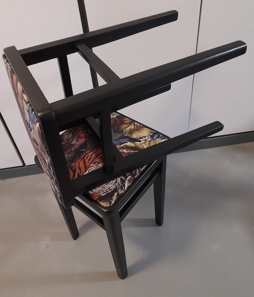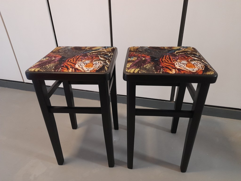 The two stools pictured here are likely to be made in the 1960s and were likely as not passed down the generations. They were initially varnished, then painted dark grey and finally painted a lighter grey. Stripping down wood usually results in a history lesson, you can usually ‘spot the decade’ when they were refurbished by the colour of the paint and/or the seat fabric! I stripped them down to bare wood then chalk painted them in black, waxed them and re-covered the seat pads with a modern velvet fabric. (The stools belong to a customer who is still currently using them but felt that it was time for a makeover).