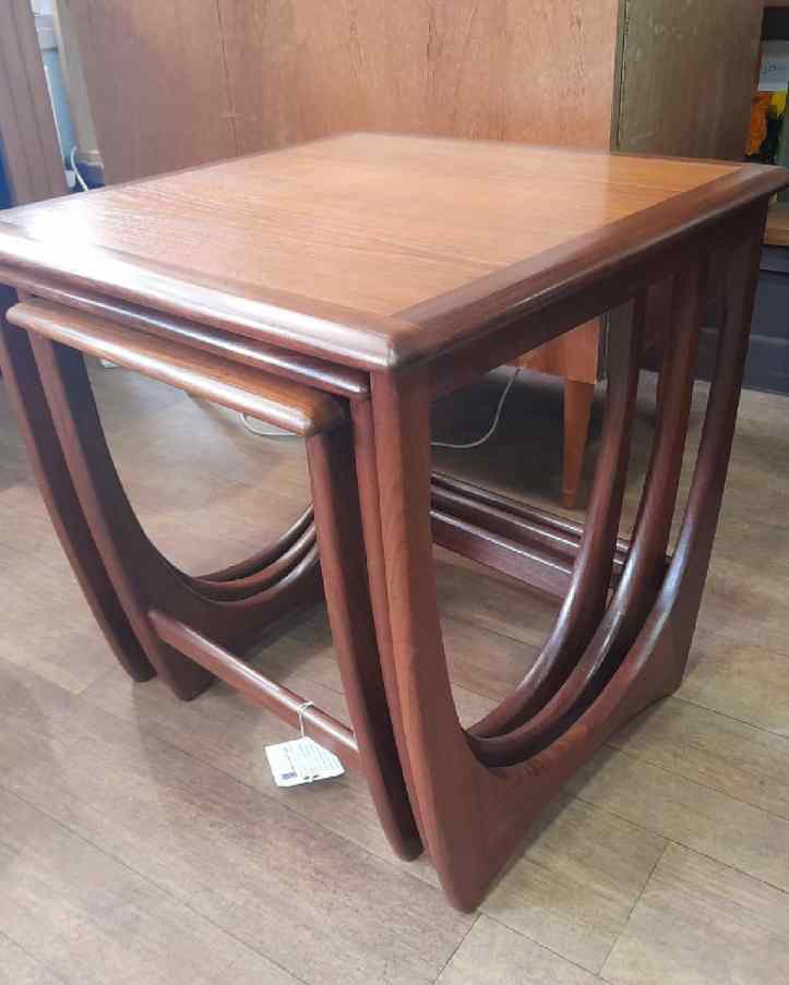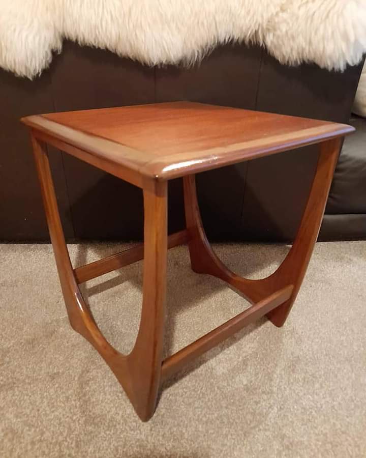 These were a pleasure to refurbish, they came up so well with a beautiful finish to them. Once again an ad on Gumtree led me to them, I paid very little for the single lamp table and the nesting tables were going free. The lamp table was pretty badly scratched and the nesting tables were covered in mud and scratches.