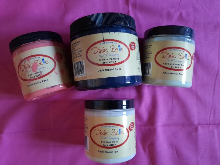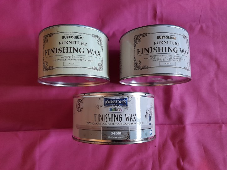 I’ve used a few different paint products and here are some of them pictured. I’m not making any recommendations as such, because paint is a personal choice, there are many different paints available and what suits one person may very well not suit another. Personally I don’t like thick paint as it has to be watered down which may result in uneven colour and most of my furniture requires a very smooth finish, but that’s just me.