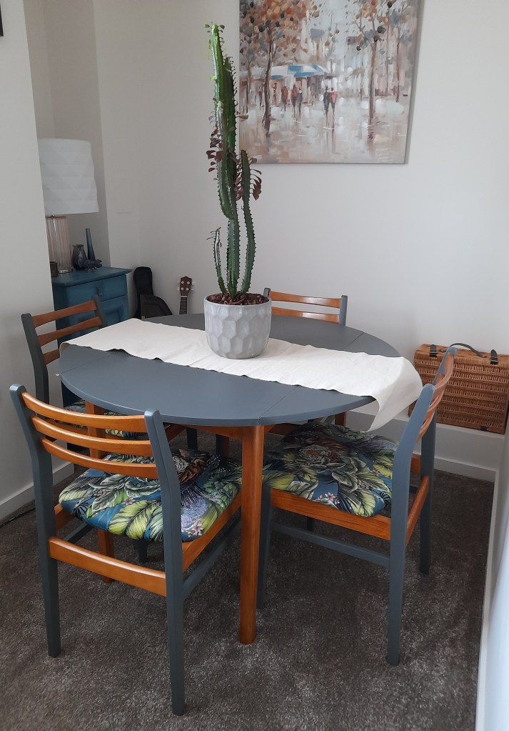 I’ve been working on this mid-century modern dining suite, made in Eastern Europe on and off for three years, see my previous post in 2021 when I began with the chairs!