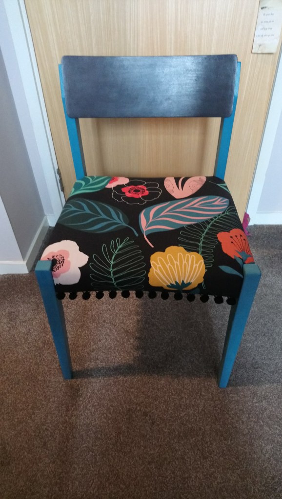 I love taking old junk, repurposing it and giving it a new life! My ‘finds’ have come from the street where someone has put an item out that they’re done with, or from ‘freebies’ on sites such as Gumtree. The chair in the photo came out of a bin store, I nabbed it and here it is …..